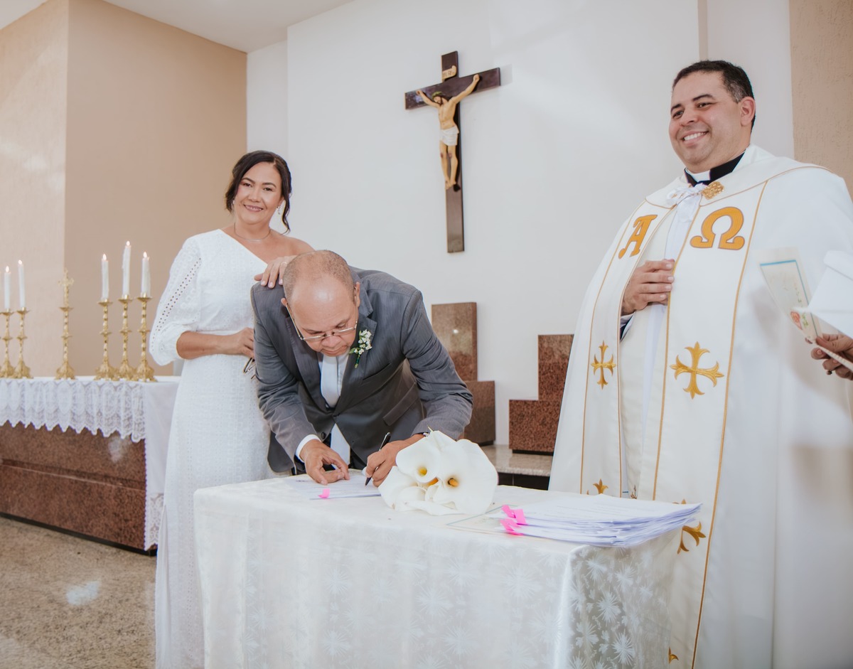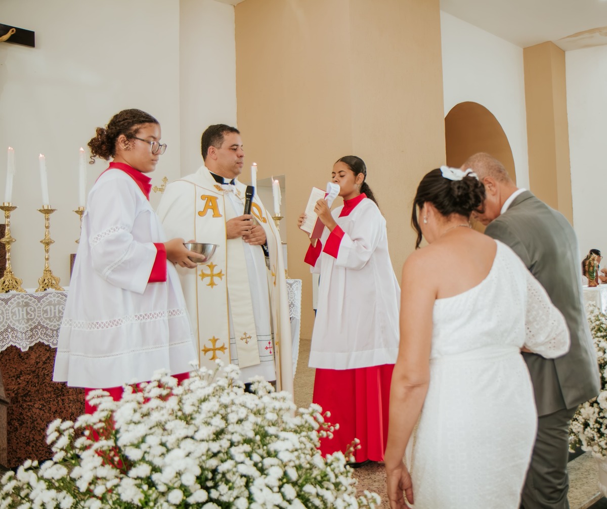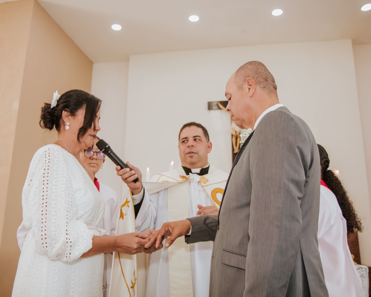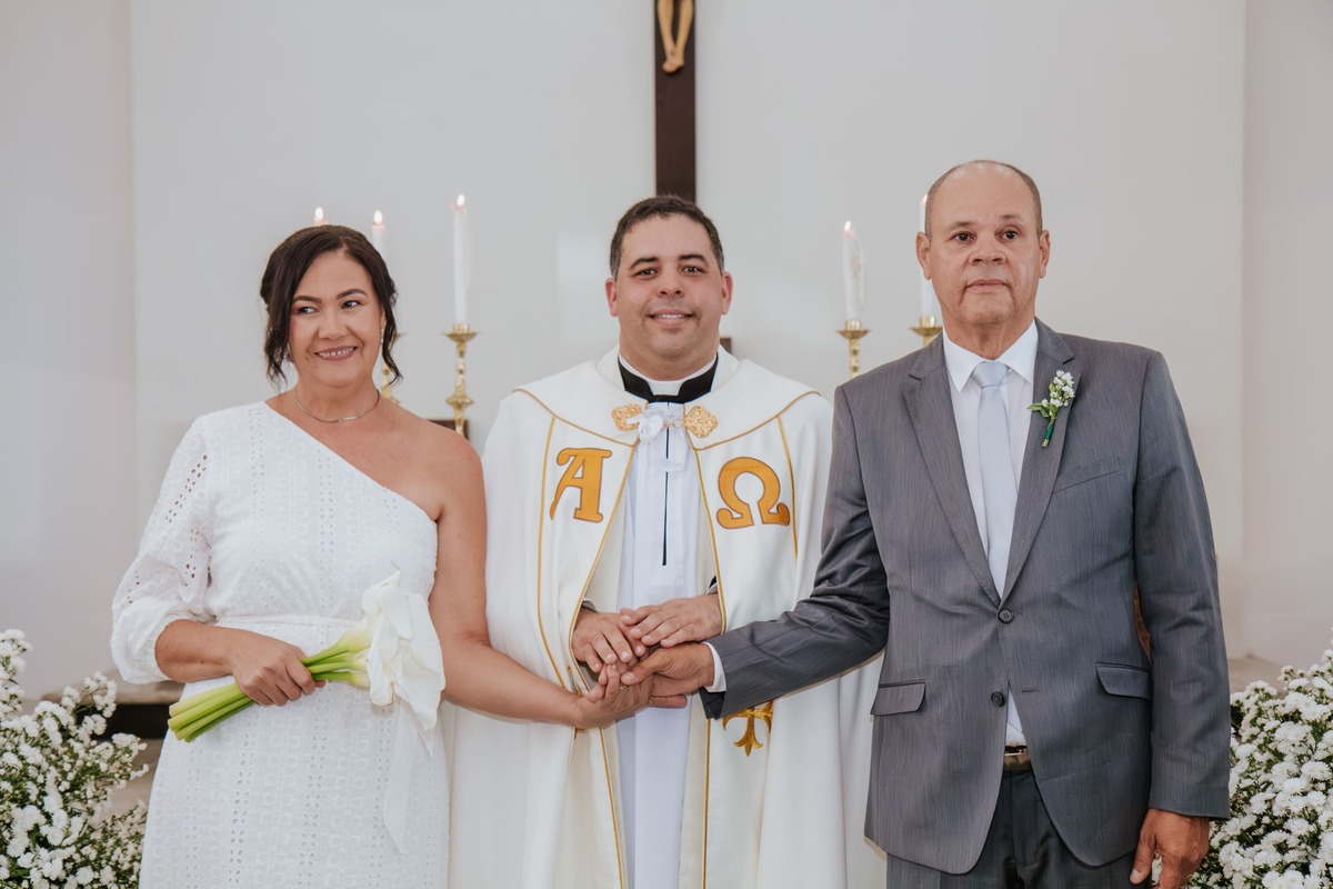 Entre sorrisos, lágrimas e orações, Risoneide e Ricardo mostraram que nunca é tarde para viver um sonho, nem para reafirmar diante do altar aquilo que o coração já sabia: o amor é um presente divino que se renova todos os dias.