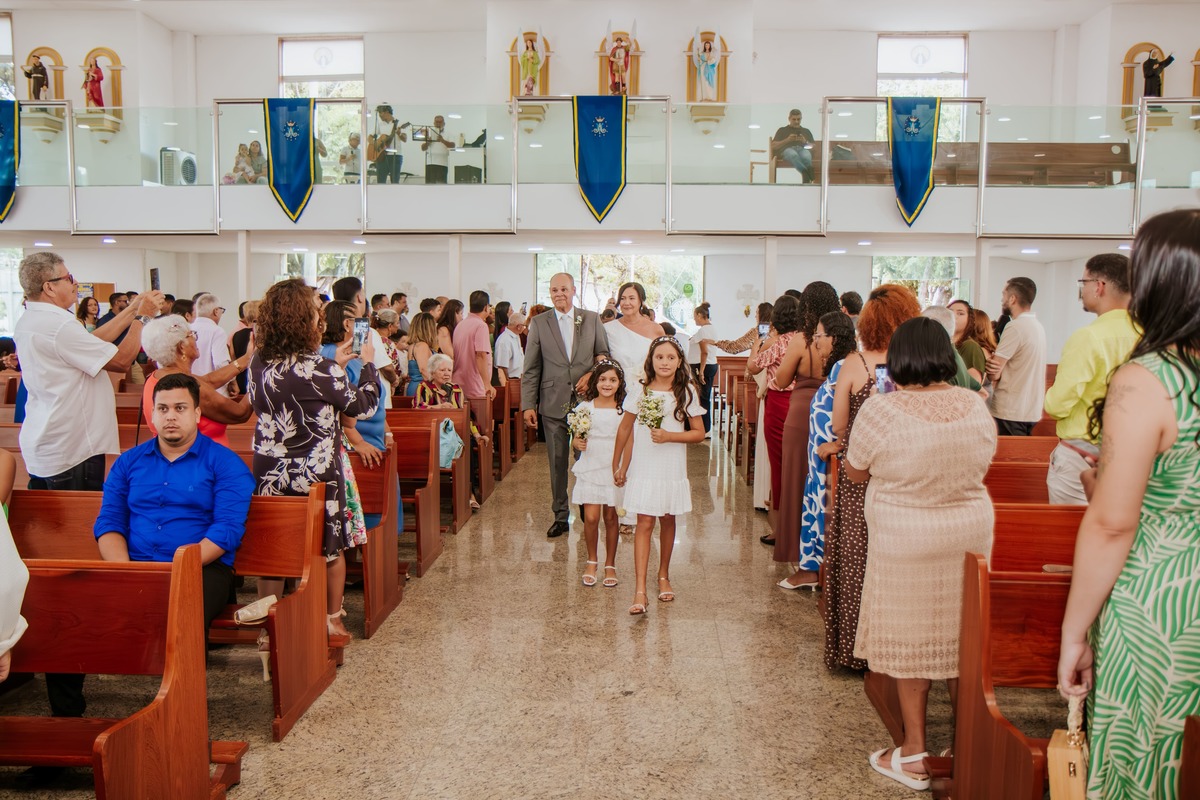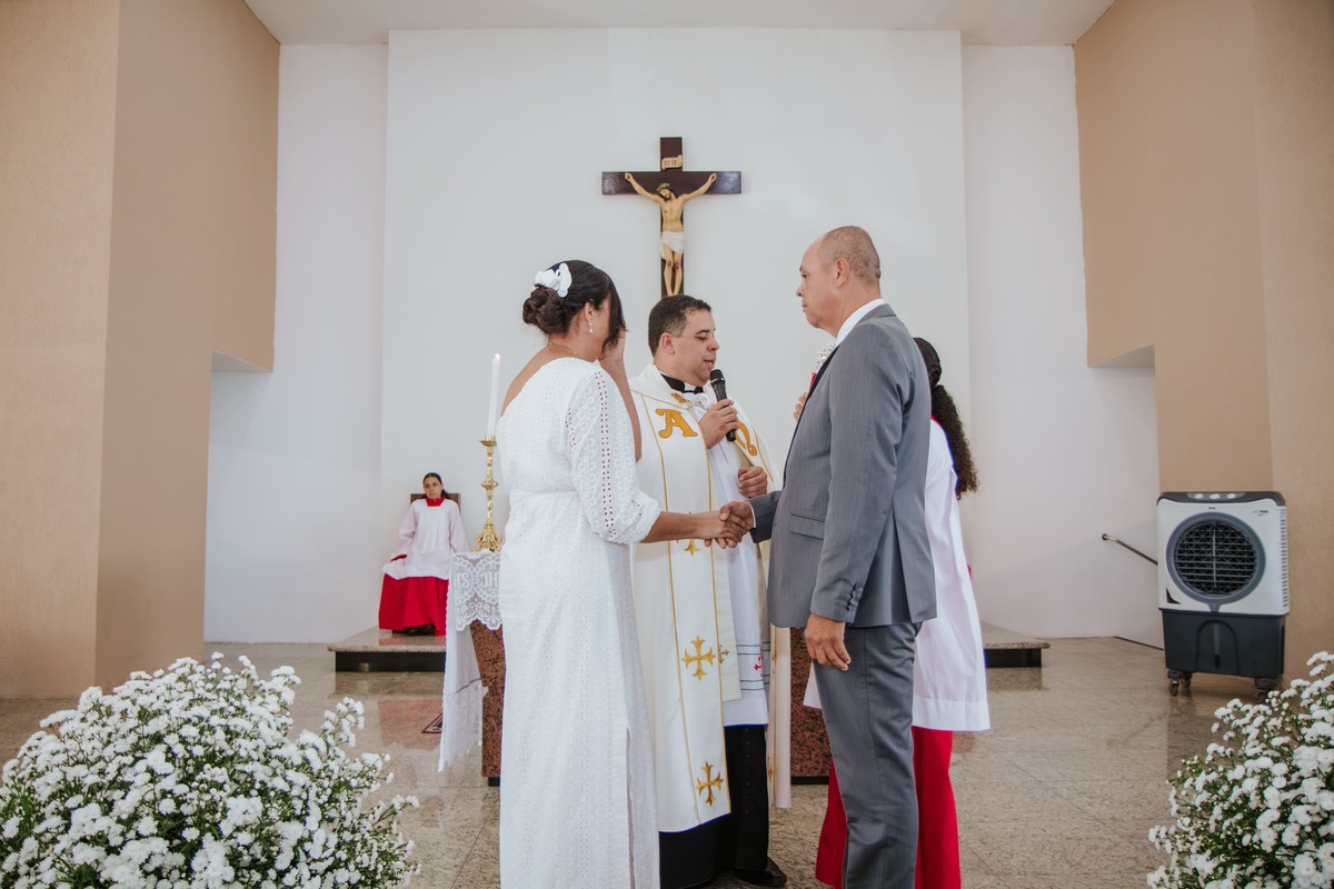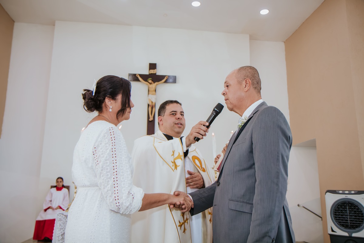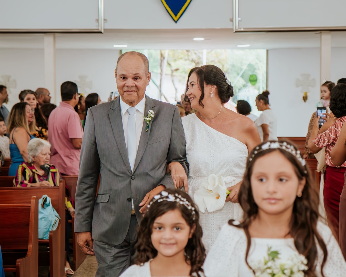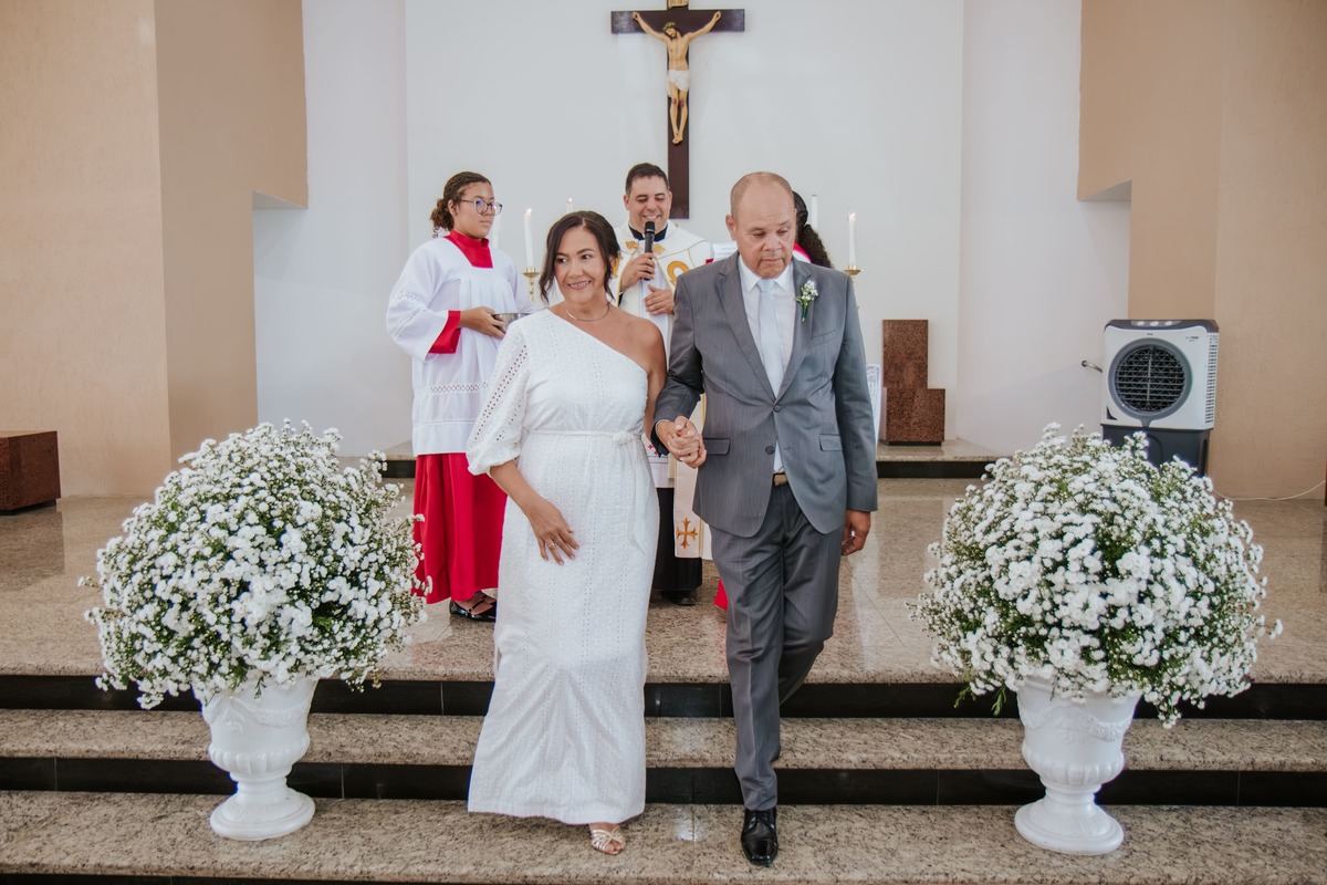 Entre sorrisos, lágrimas e orações, Risoneide e Ricardo mostraram que nunca é tarde para viver um sonho, nem para reafirmar diante do altar aquilo que o coração já sabia: o amor é um presente divino que se renova todos os dias.